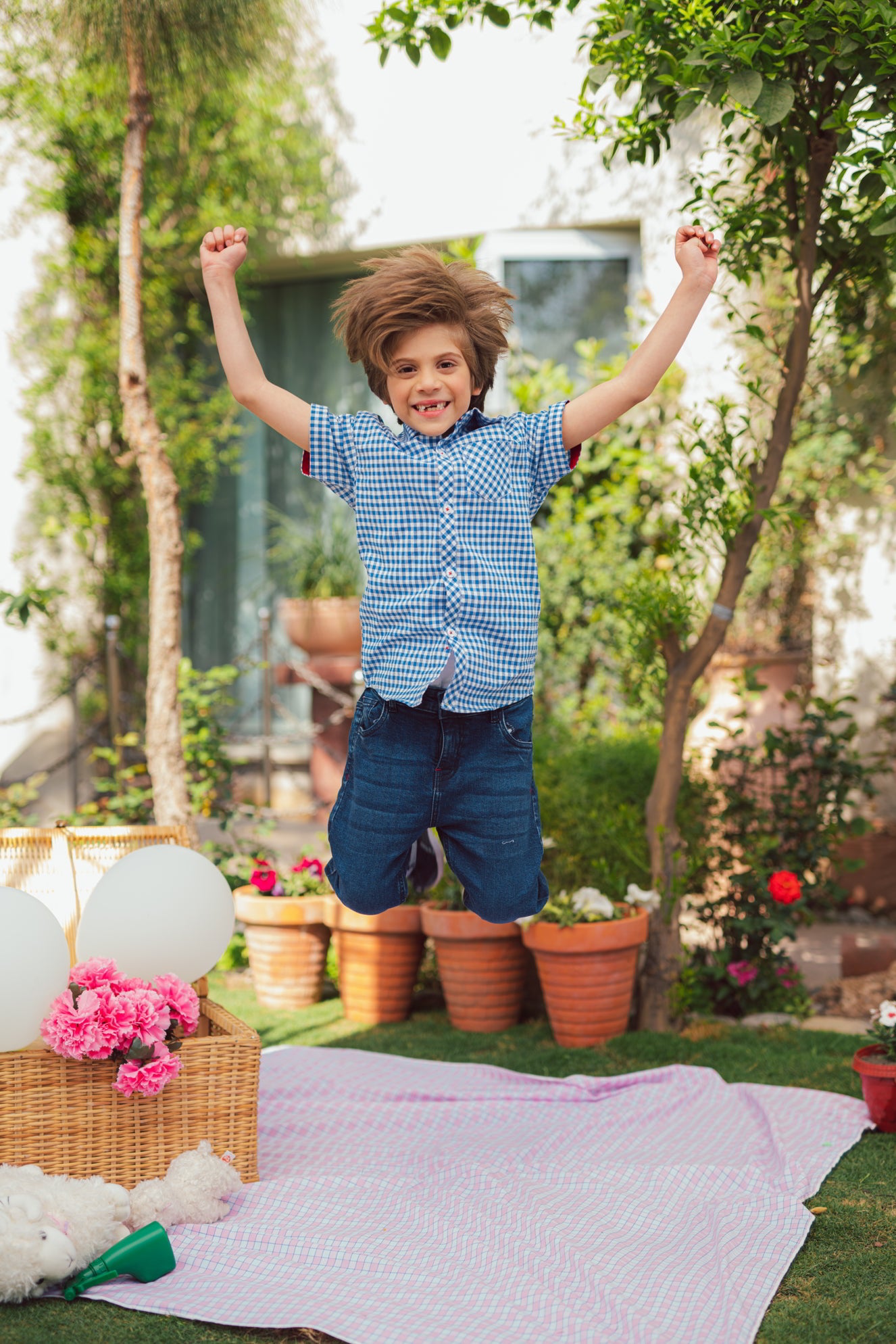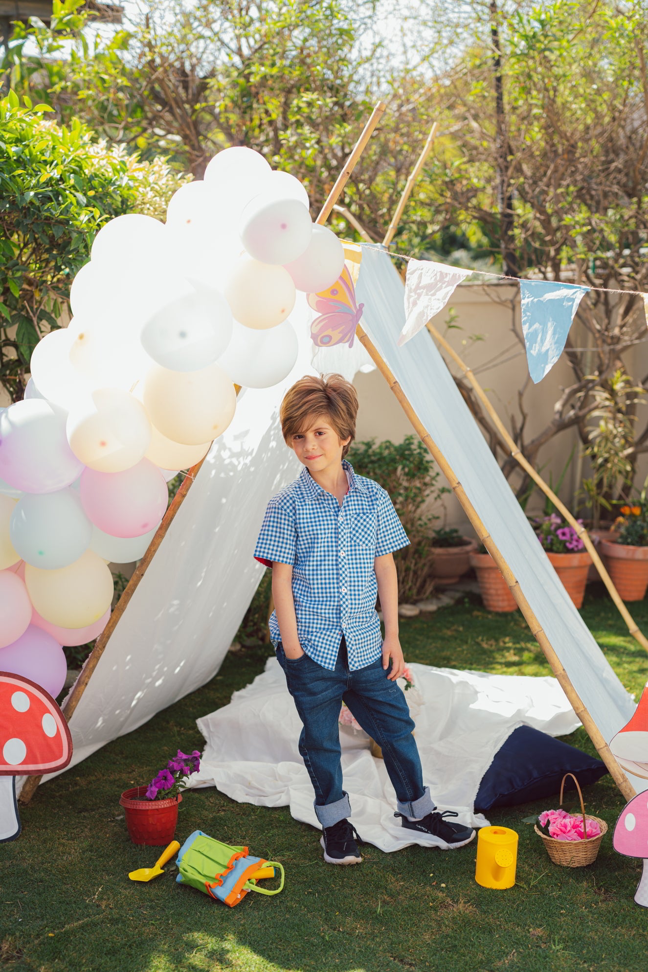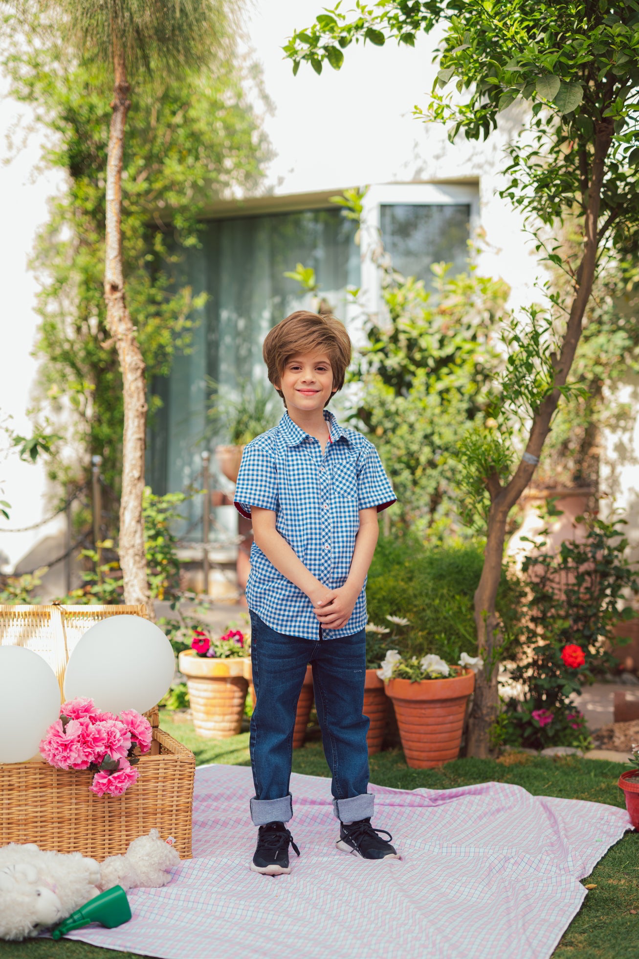 Blue and White combination can never go wrong! Our collared button down half sleeve summer shirt has a front pocket and inner collar contrast detailing to add to the look. Pair it with our deep blue denim jeans to get this perfect look.