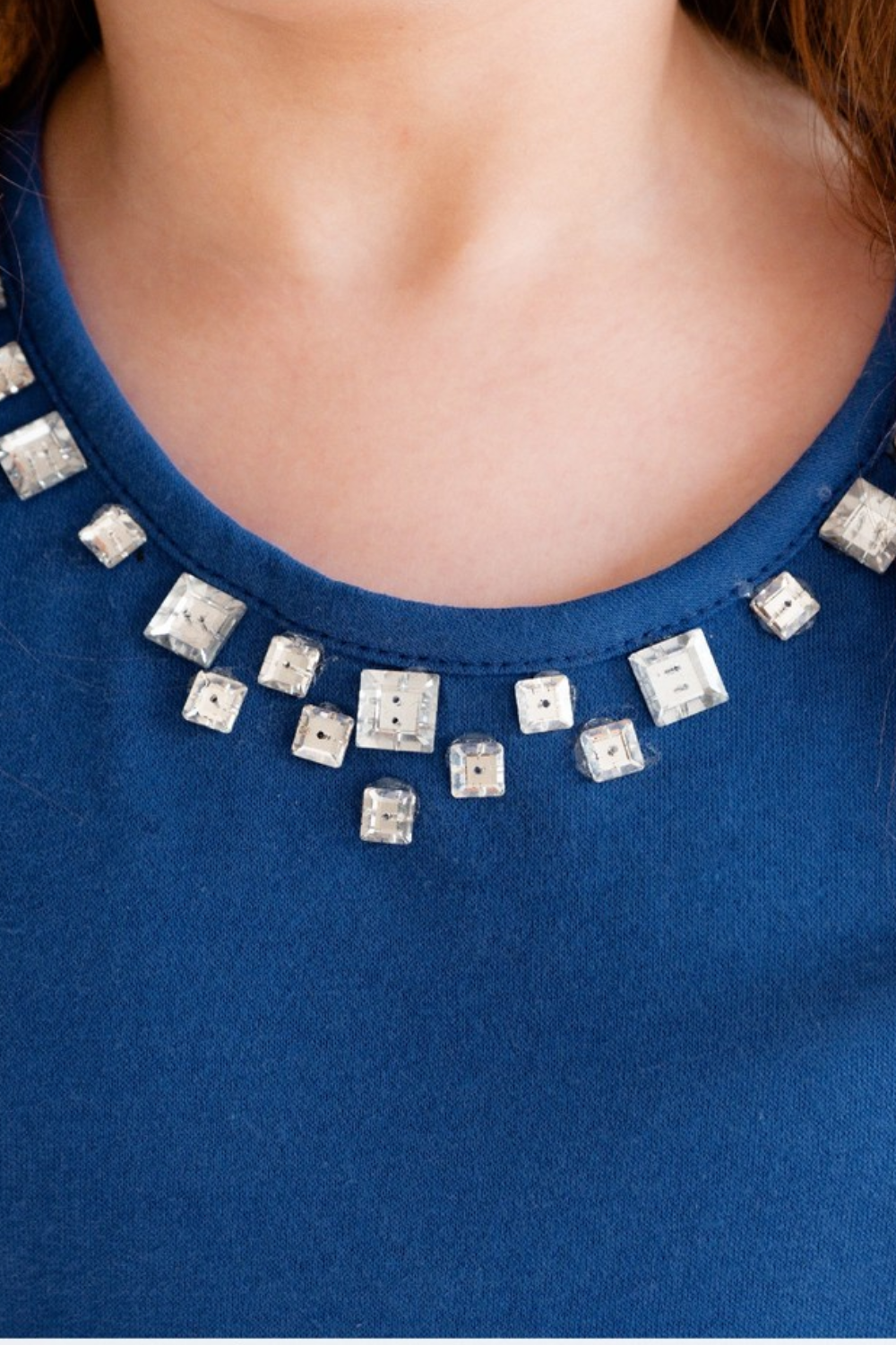 Let your adorable girl shine in this bright colored sweatshirt dress, rendered in soft cotton fleece. It comes with a diamanté embellished neckline making it a show stopping outfit.