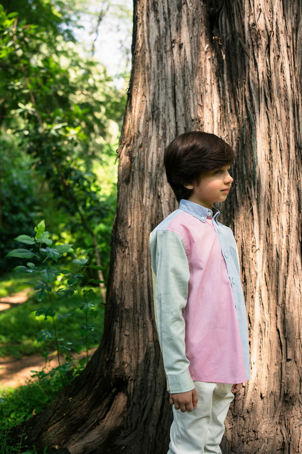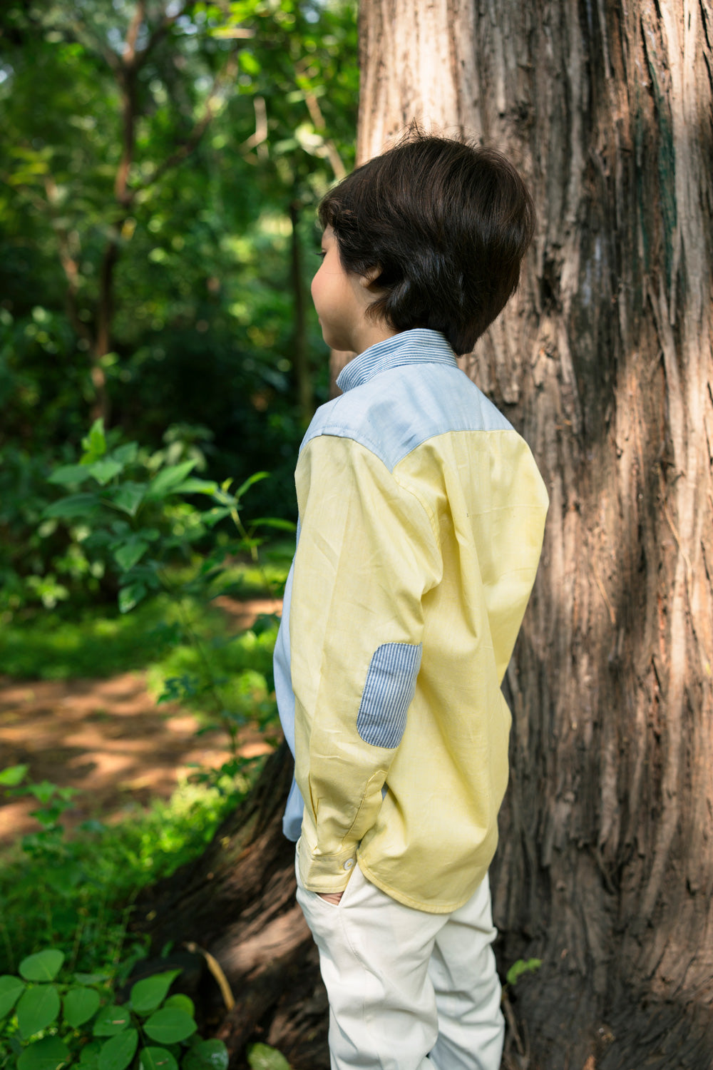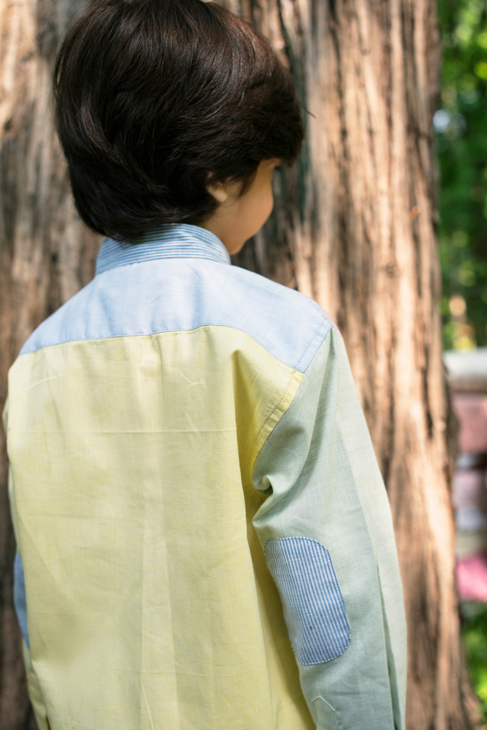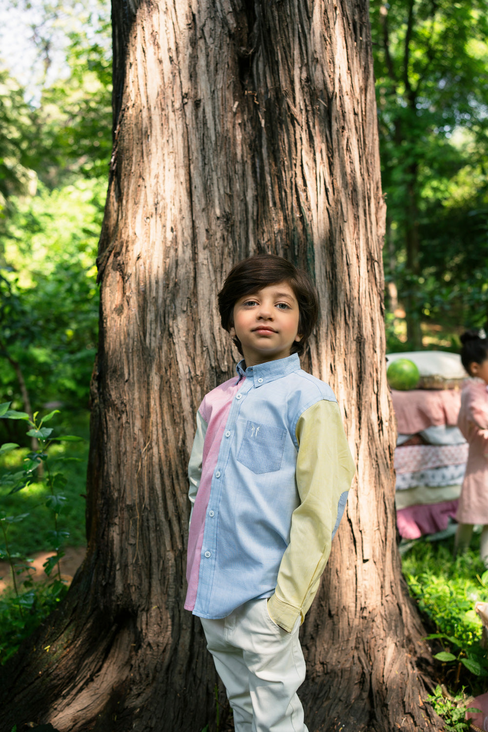 We love to experiment with boys fashion and are excited to bring to you this fun and whimsical Multi-colour block style for your little man! Imagined in pure cotton chambray fabric, this full sleeved button-down style shirt with our embroidered logo and meticulously designed detailing is a must-have in your boy's wardrobe! Makes a classic match with our white chino pants!