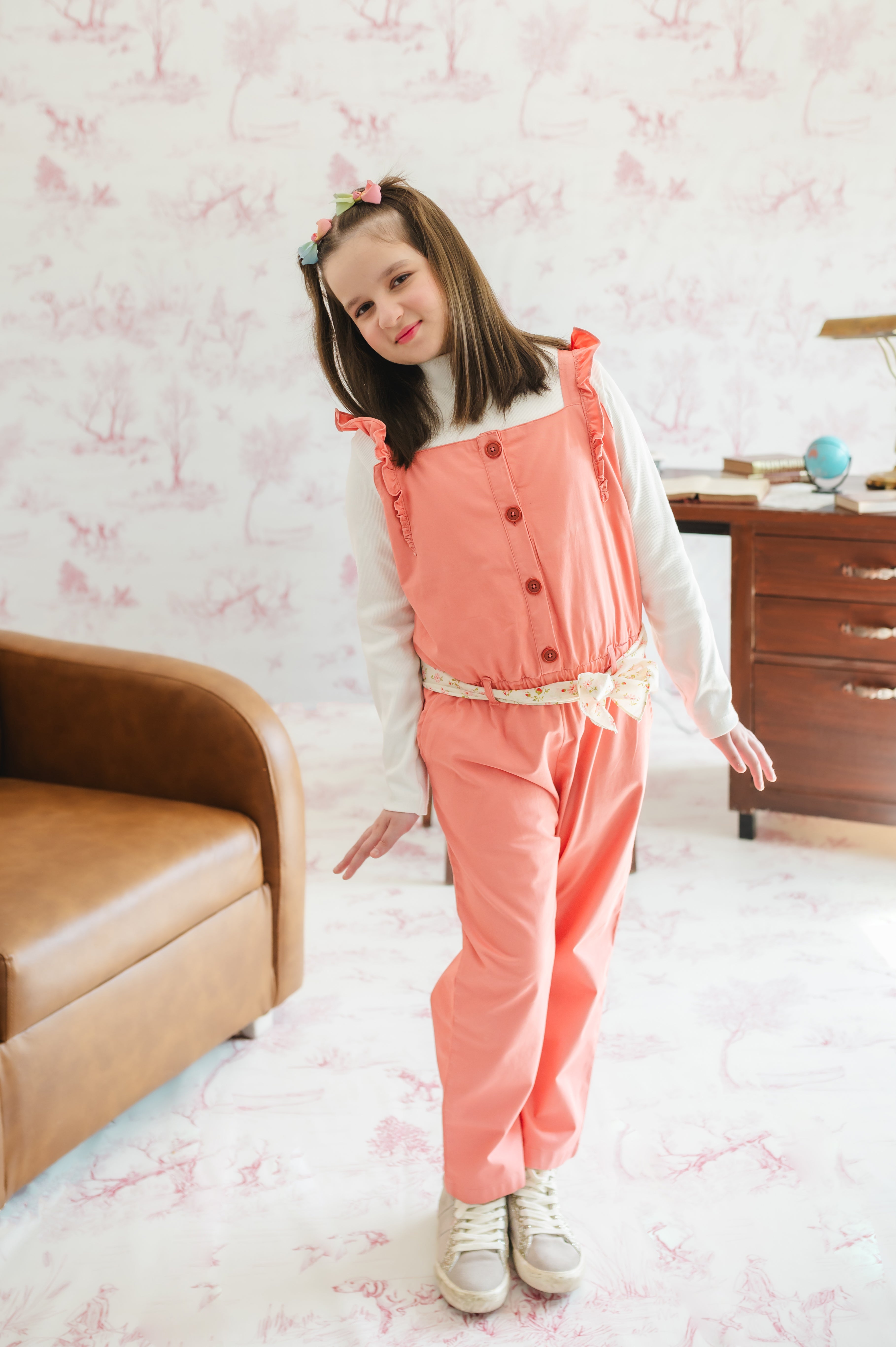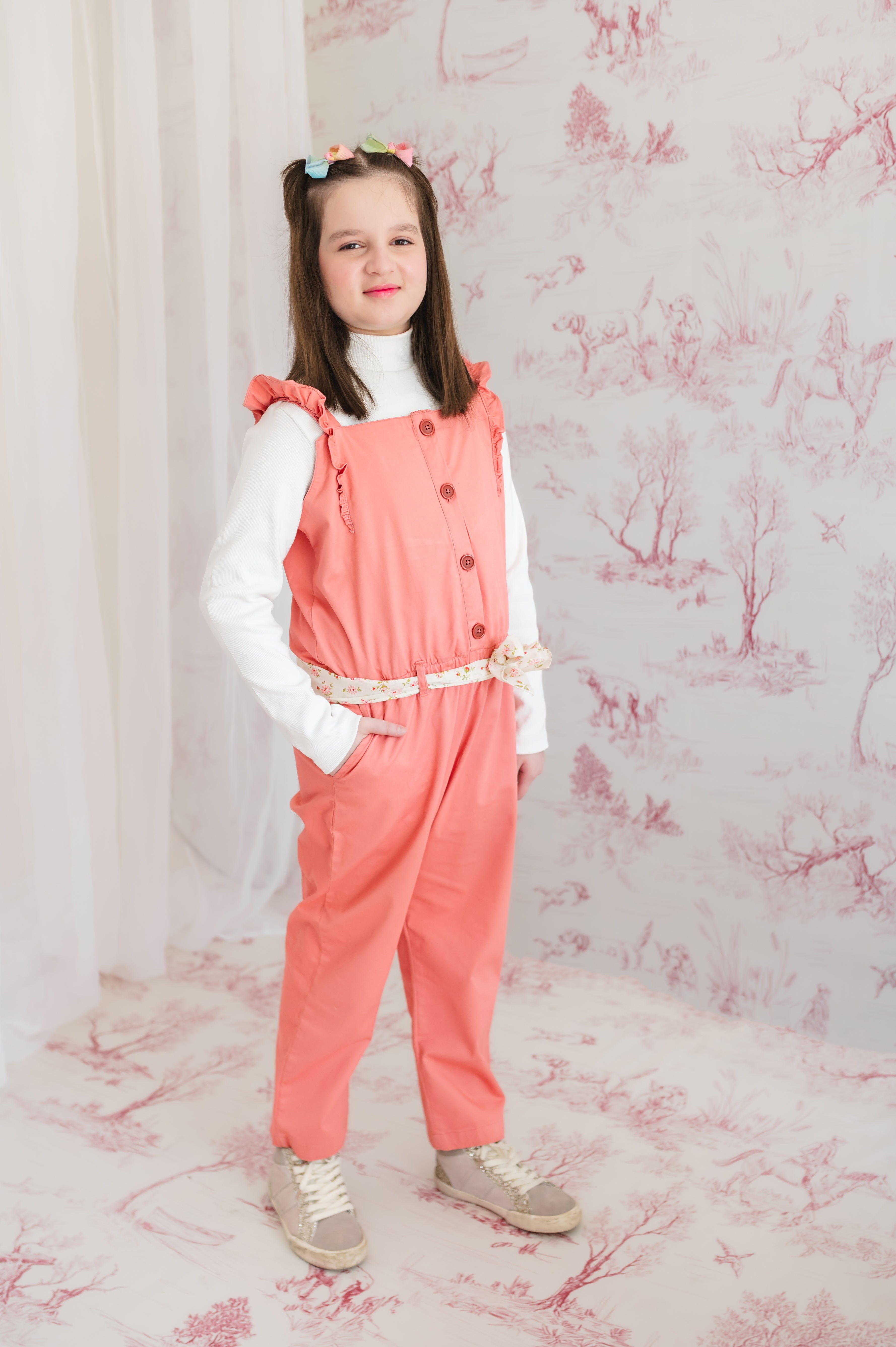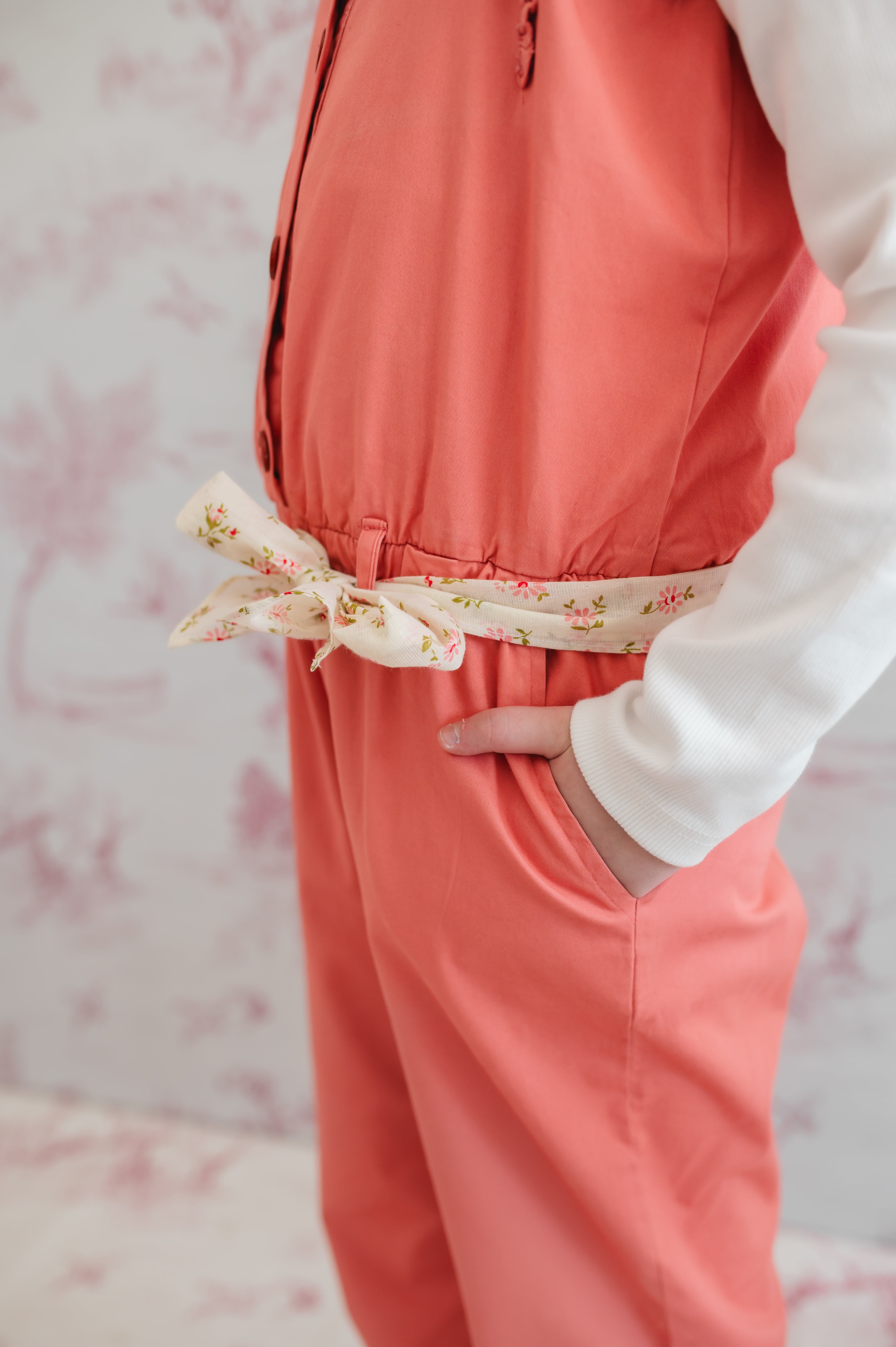 Cheerful, comfy, and full of personality — our Coralberry Overalls are made for sunshine-filled adventures and twirling fun. Crafted from lightweight, breathable cotton in a warm coral hue, this sleeveless one-piece is designed for movement, ease, and standout style.
