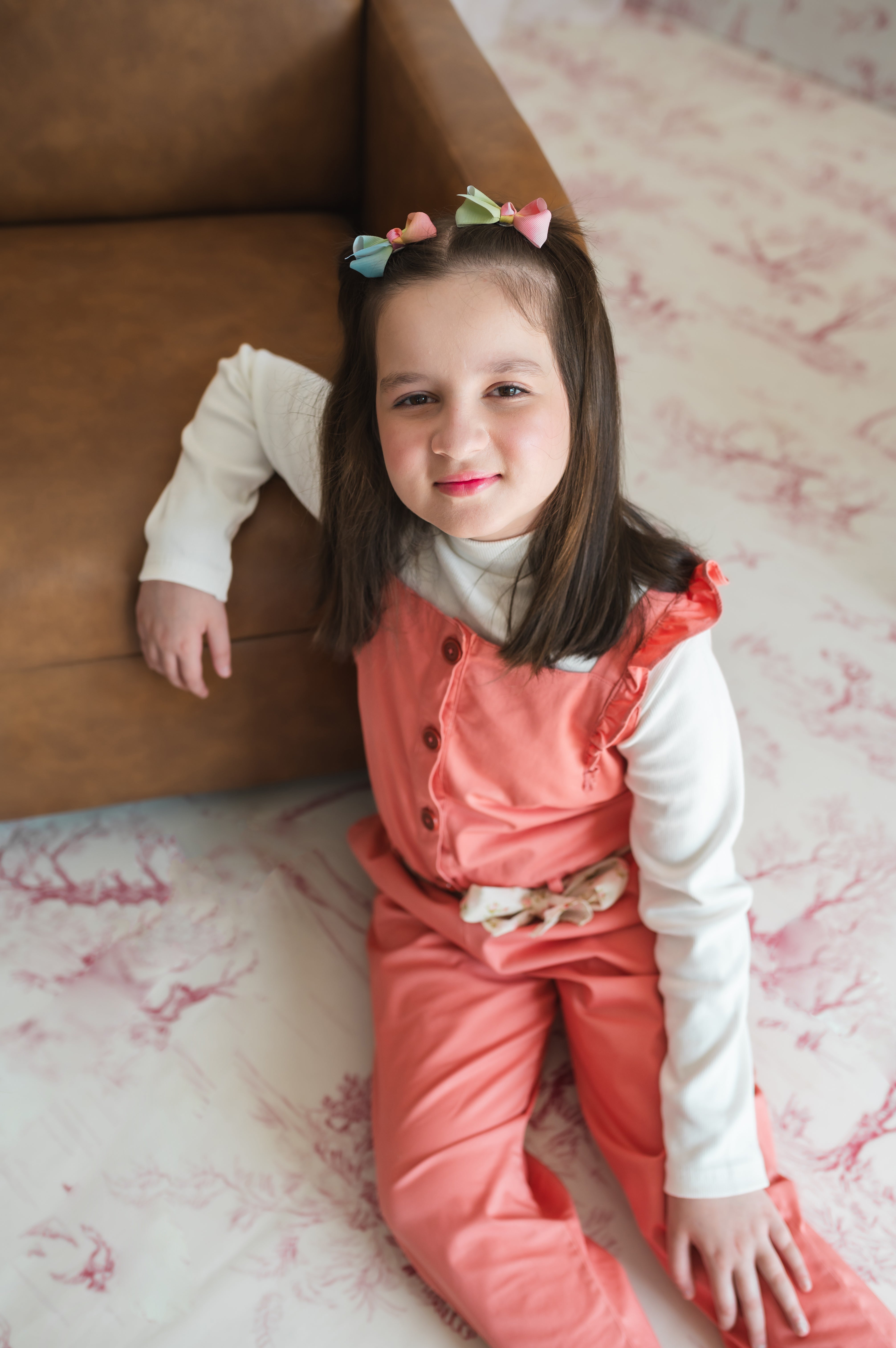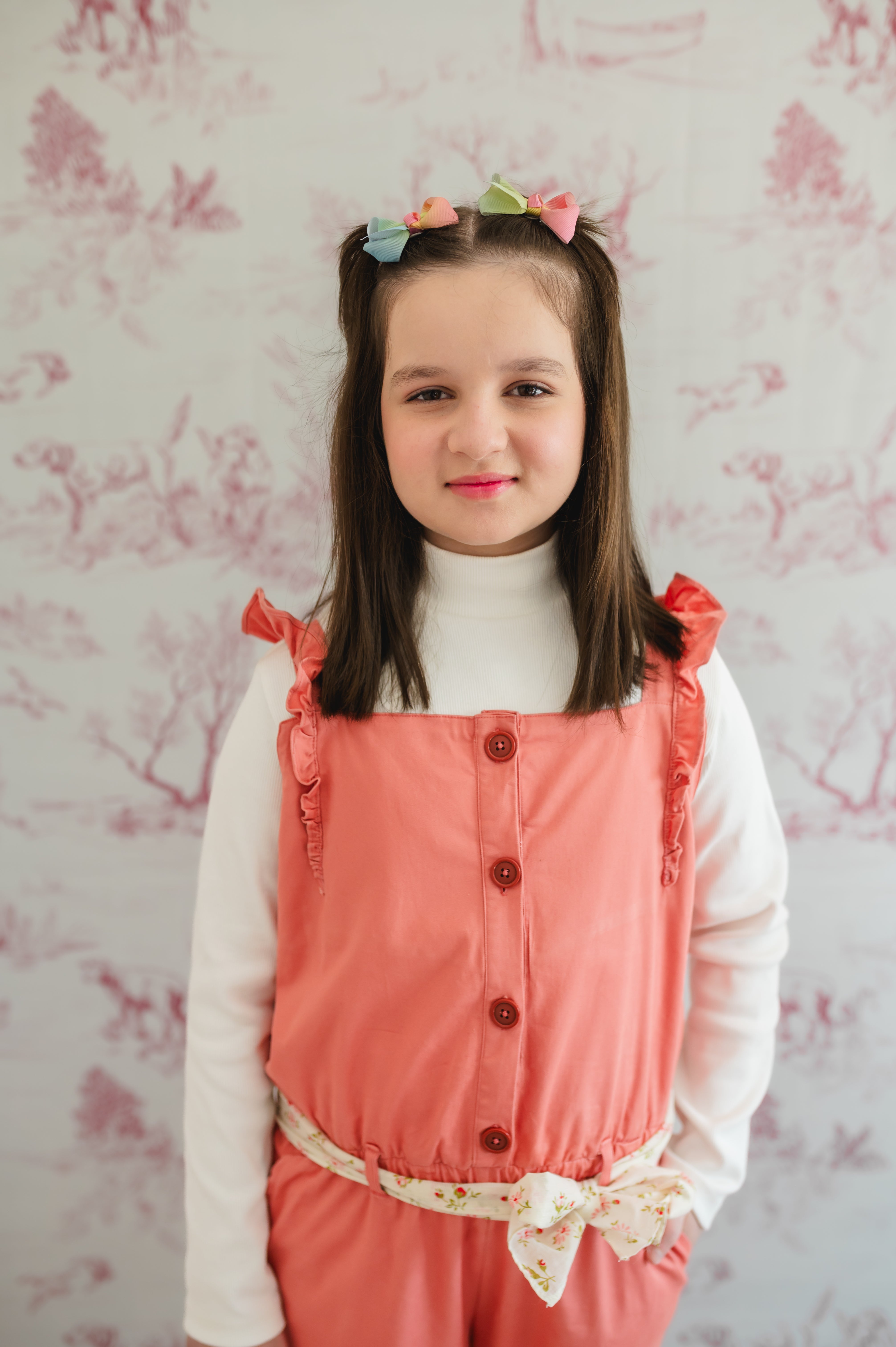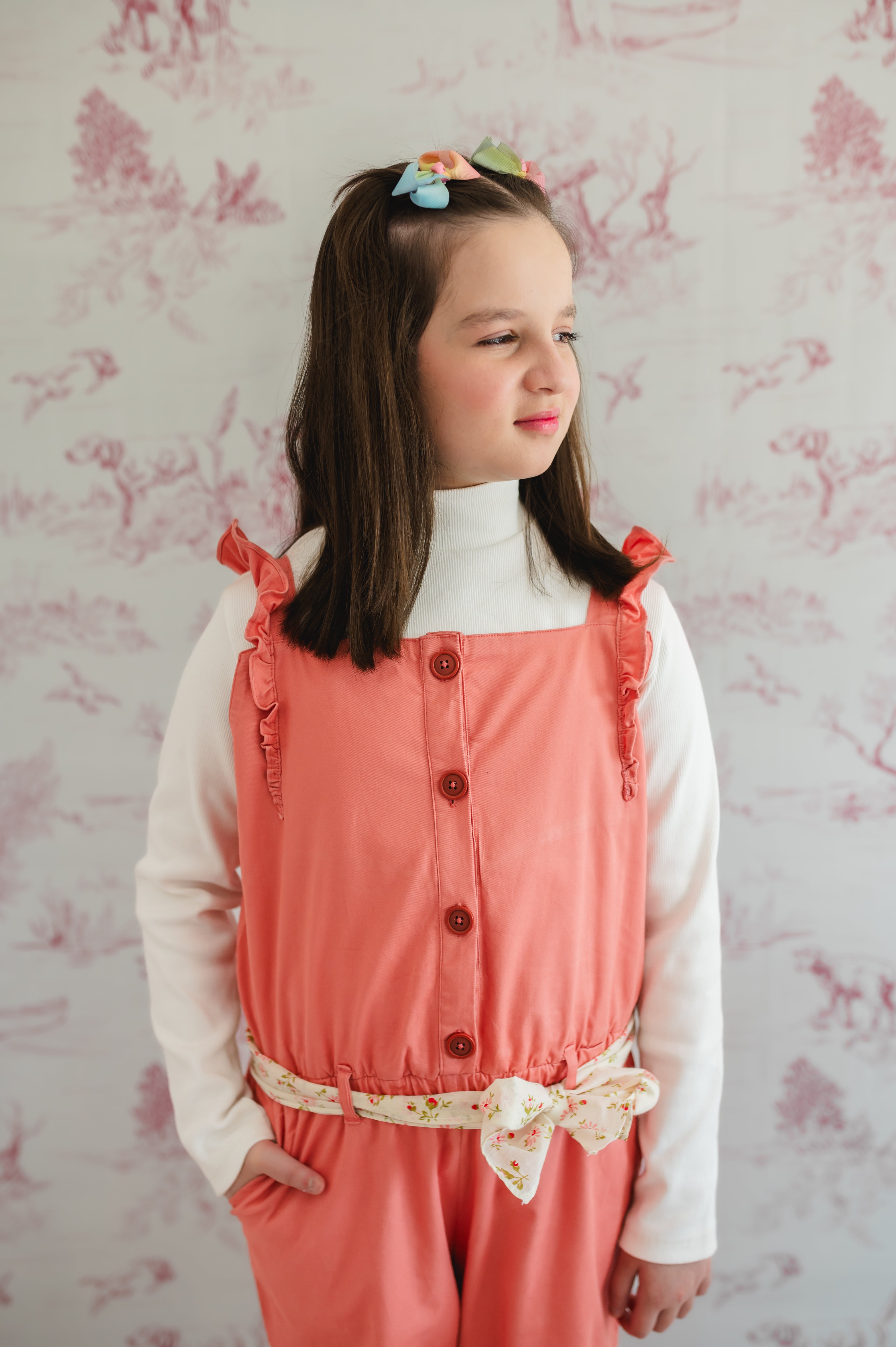 Cheerful, comfy, and full of personality — our Coralberry Overalls are made for sunshine-filled adventures and twirling fun. Crafted from lightweight, breathable cotton in a warm coral hue, this sleeveless one-piece is designed for movement, ease, and standout style.