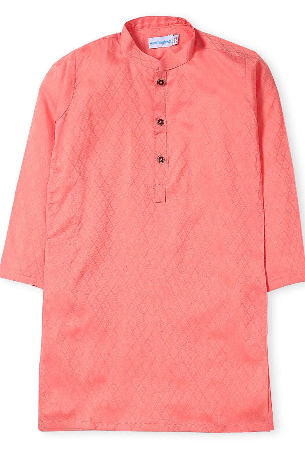 Inspired by the spring season, this kurta is as beautiful as its name. The fresh and cool Coral Reef colour will add vibrance to your little one's Eastern wardrobe. Crafted with a woven Jacquard lawn fabric, it features a self-woven print and is accented with wooden buttons on the front opening. Pair it with any one of our stunning waistcoats to get the complete look!