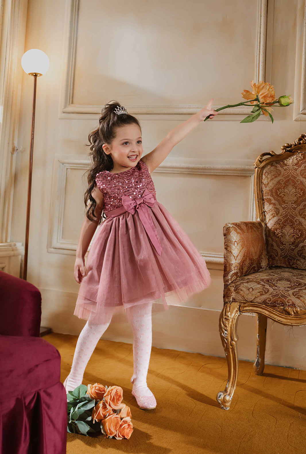 Nothing gets a growing fashionista more excited for a big event than the perfect outfit. This pink tutu dress from our Party collection ensures that all their cartwheels and spins will be sparkling, adorned with a helping of shining Sequin bodice and fluffy tulle gathers with silk detailing to the shoulders and a pretty neatly tied bow reminiscent of a ballerina princess!