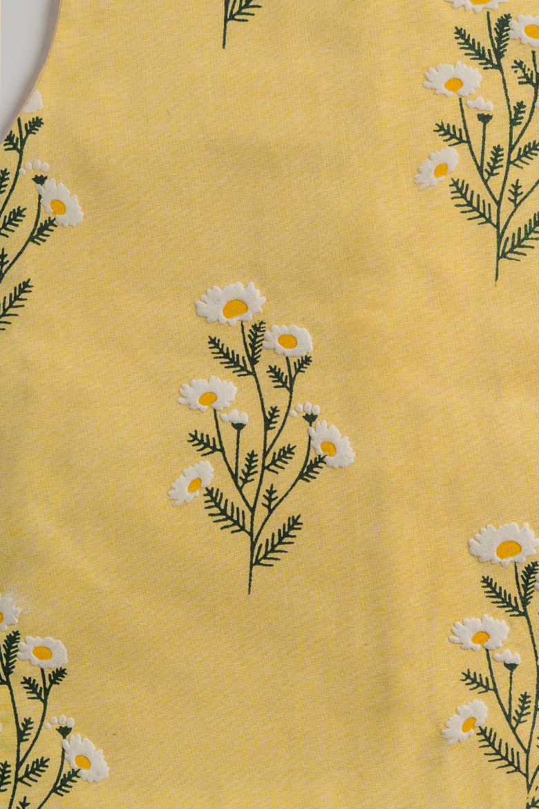 The yellow base features a unique and delicate daffodil floral block puff print design in soft hues of white, yellow, and green all over. Pair it with our yellow, white, or Cream Boski shalwar kameez suit to get this stunning look.