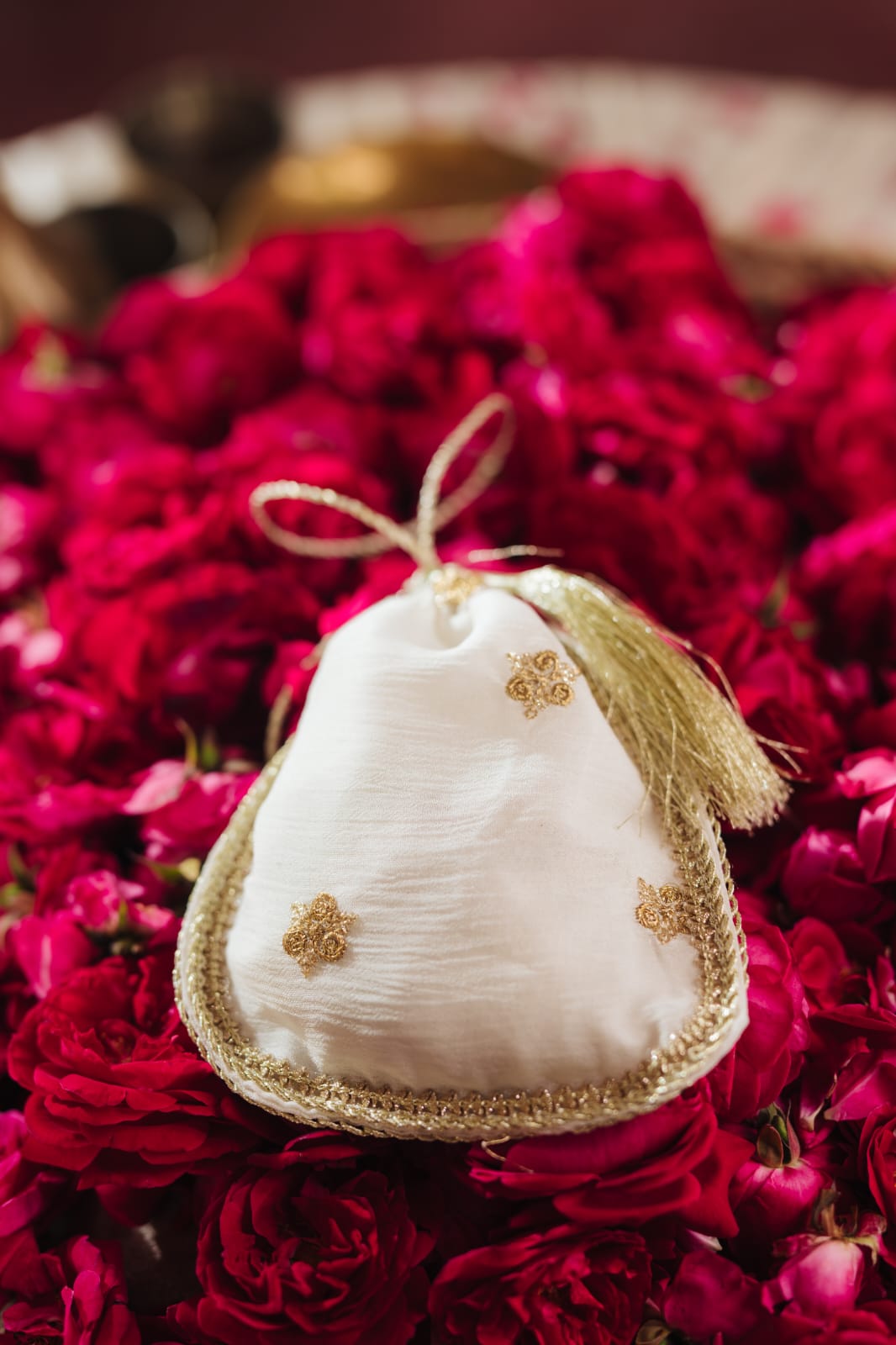 Inspired by the delicate beauty of the Nargis flower, this pristine white and gold ensemble is the epitome of grace and sophistication. The Angrakha-style A-line silhouette offers a dreamy, elegant look with effortless wearability.