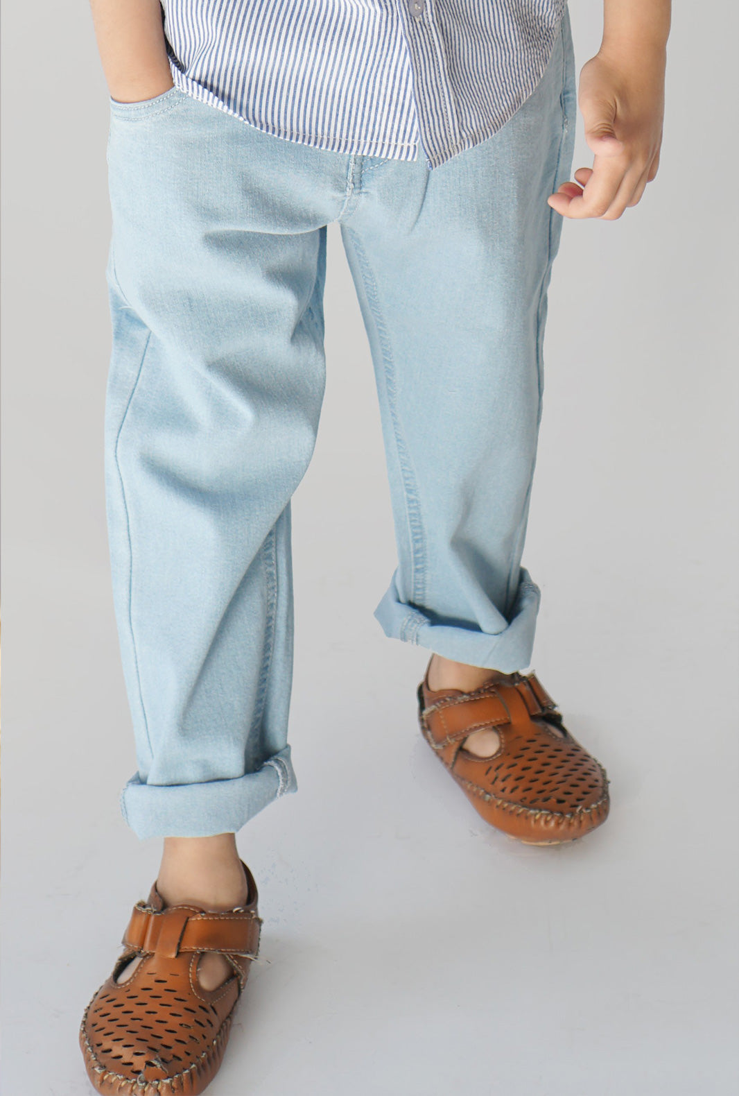 The trending color for Jeans this summer is this cool light blue wash! The relaxed fit style gives you the extra edge to explore the world in ease, comfort and stye! Pair it with our t shirts and shirts for an outdoor activity day or a playdate!