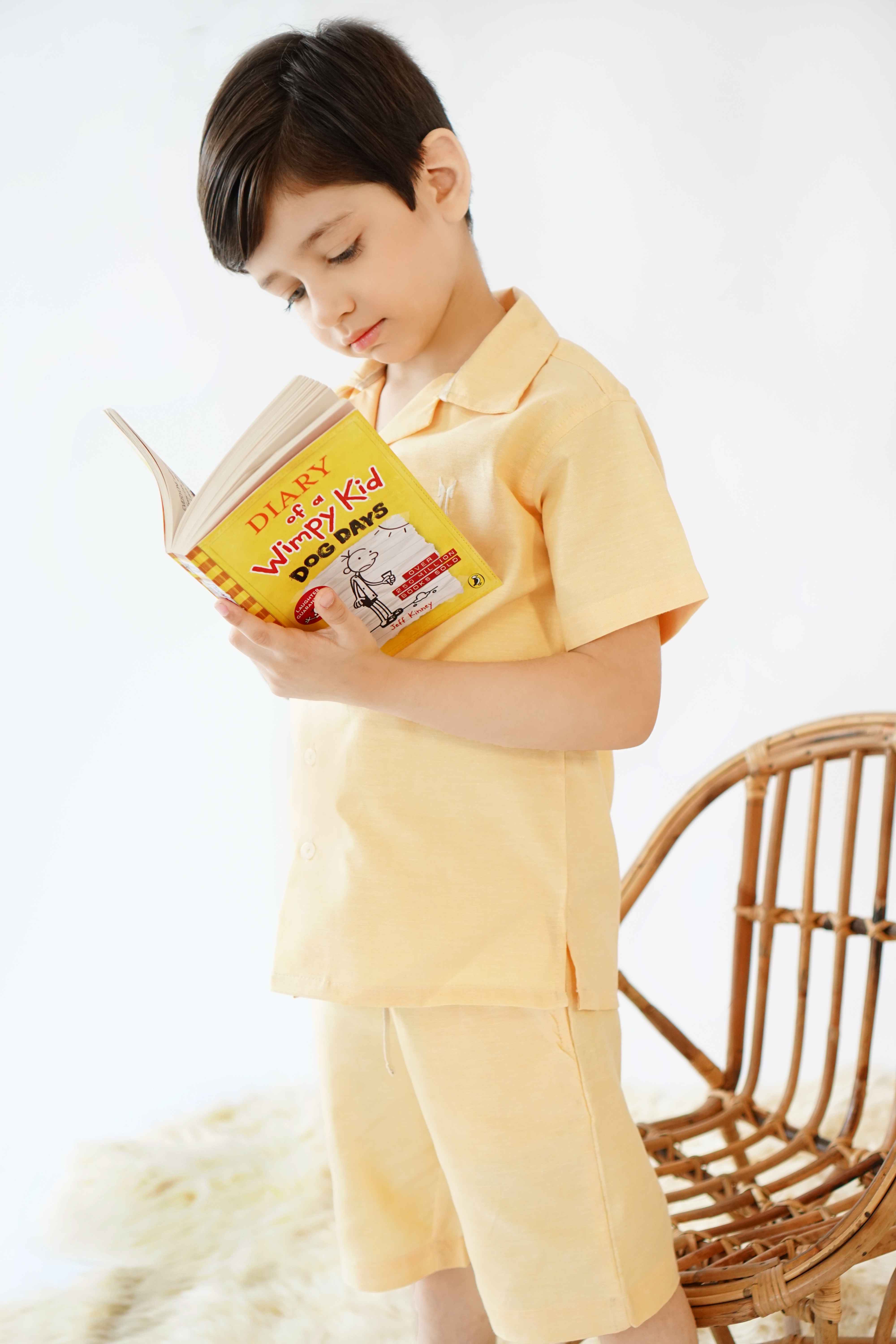 Let's go into Vacation Mode!Its going to be a cool summer indeed & with this pale peach and cream combination, one can never go wrong! Our cuban collared button-down, half sleeved summer shirt boasts our embroidered logo in cream white across the front. Imagined in a soft cotton chambray fabric, the shirt features white buttons and cream white piping inside the collar. For the full summer holiday season effect, pair it with our pale peach shorts or white chino shorts to get the perfect look.