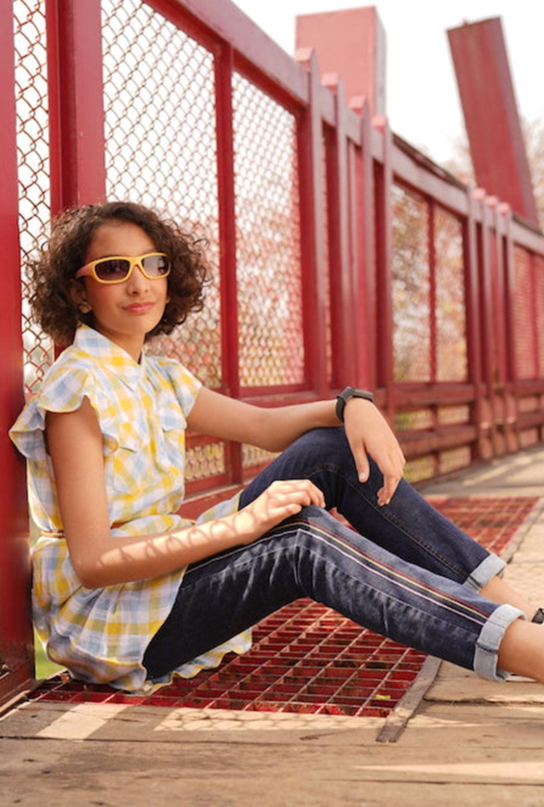 Our showstopper jeans are a must have for your child's wardrobe! The colorful running stitch pattern on the sides on our dark denim jeans are a stellar combo. These jeans will look great with all of our adorable tops and shirts!