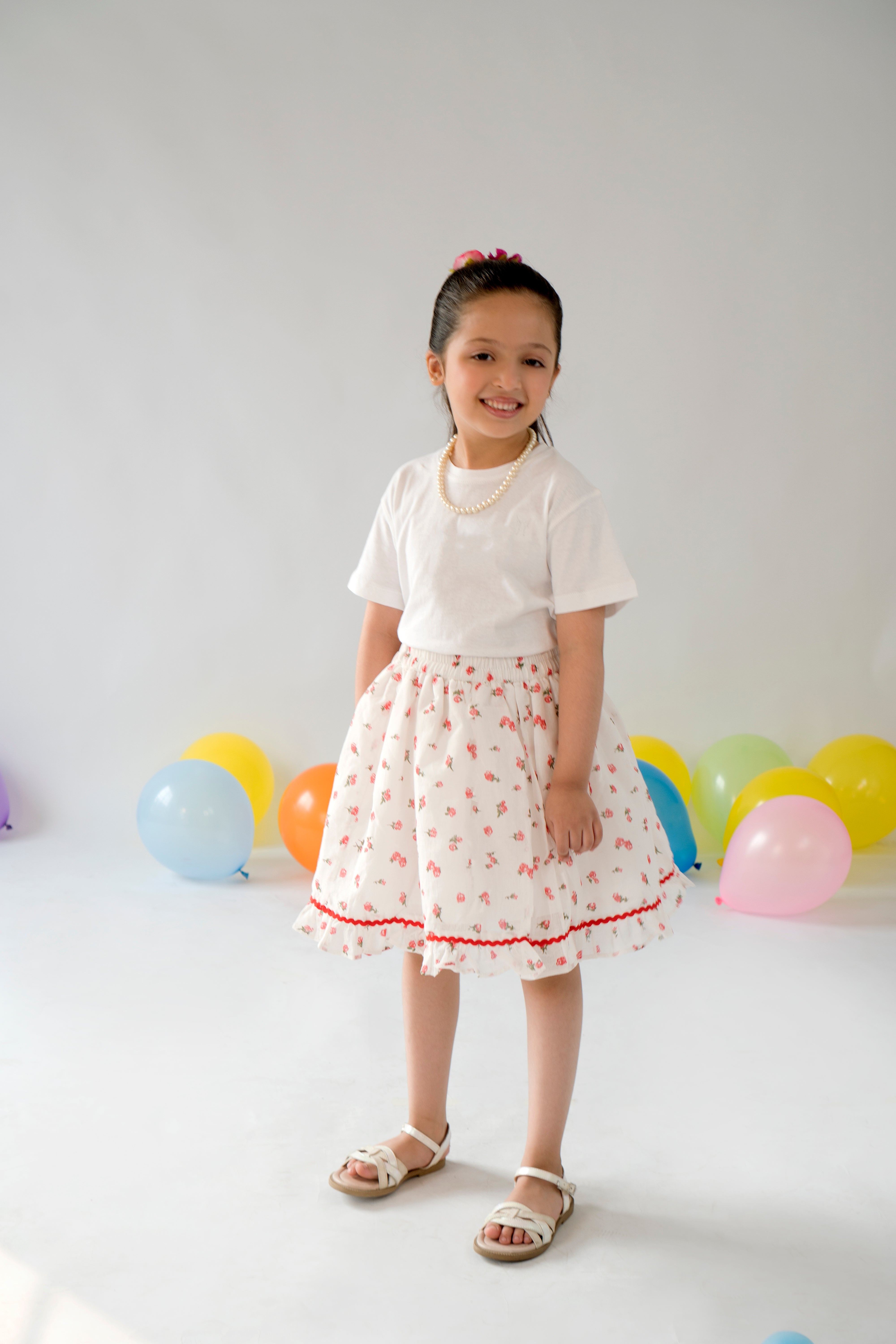 Bouncy, breezy, and full of charm, our Rosebud Bouncy Skirt is made for sunshine days and twirling fun. Crafted from a fine, breathable lawn, it features a crisp white base scattered with tiny red rose buds that bring a fresh, playful feel to any outfit.