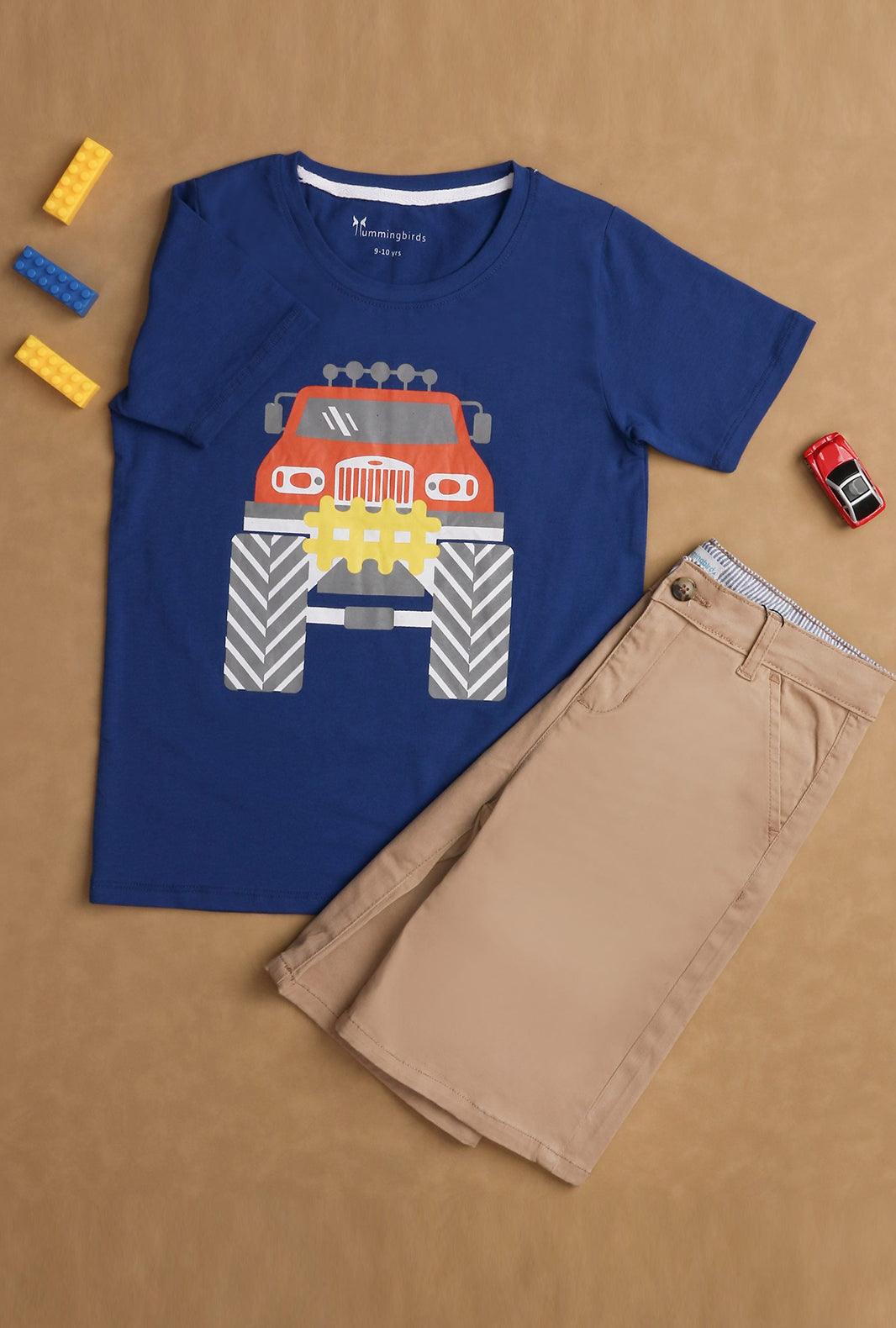 Beep, beep! Make way for this vehicle-themed T-shirt. It has an unmissably bright and cheerful color with a fun graphic printed on the front. Crafted from pure cotton for a super soft feel makes this piece smart and timeless addition in your kid's wardrobe. It has a ribbed round neck and short sleeves to keep things cool on sunny days.