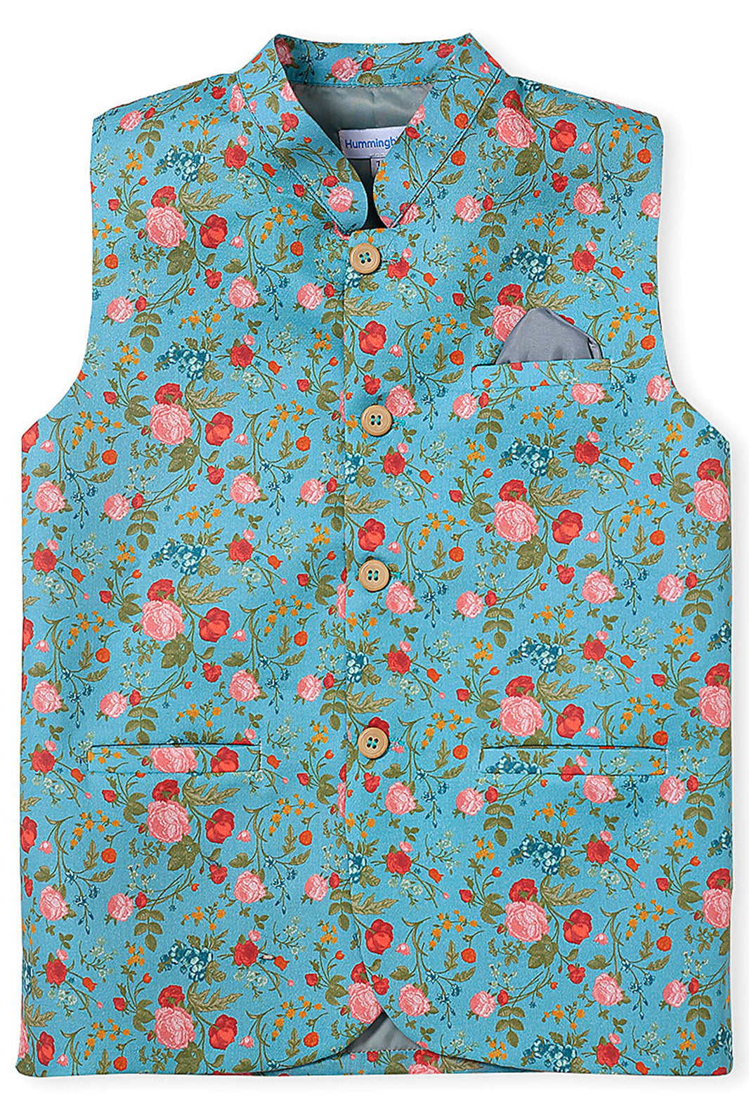 'A Rose is A Rose'. Spring Season isn't complete without the blossoming of rosebuds into blooming roses! That's what inspired us to create this rose garden printed waistcoat, it's indeed a sight for sore eyes. Imagined in a soft and summery Cotton fabric, it features a garden full of pink roses print all over against a cool minty green. Lined with fine pure silk, the wooden buttons add elegance to the whole look. Ideally, it can be paired with our Mint green kurta or any other color from our 2023 Eid Collection.