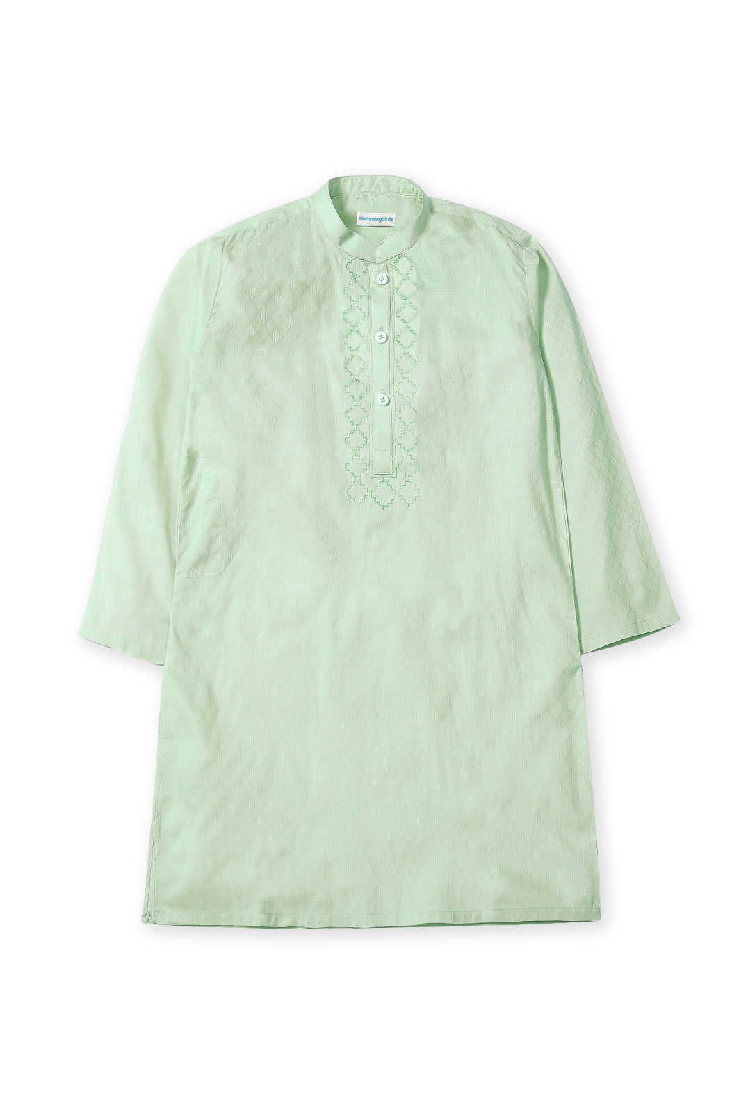 This beautiful Mint Green kurta is a delightful addition to our Eid Collection. It's created with pure embossed woven lawn fabric and is accented with self coloured embroidery along the placket. The intricate thread embroidery adds an elegance to the whole look. Wear it on its own or pair it with any one of our waistcoats for a head turning look!