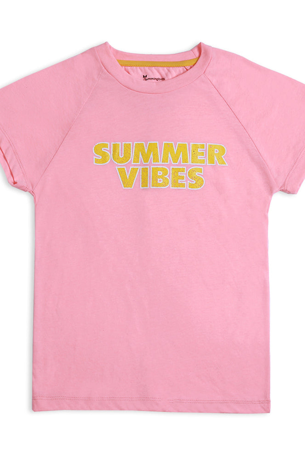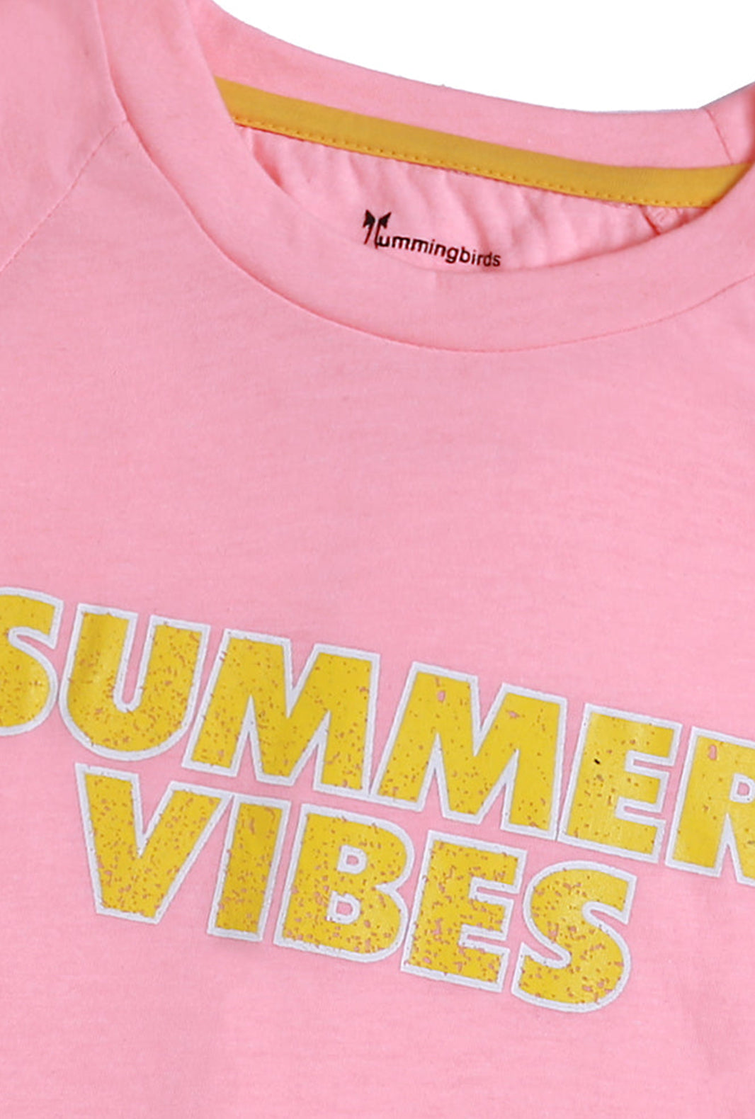 We're feeling the Summer Vibes! This vibrant peach T Shirt is what a day at the beach feels like, imagined in the softest cotton imaginable, the HD print in yellow takes the color combo to another level. It features a crew neck and half sleeves, pair it with Hummingbirds jeans or shorts for a fun day outdoors.