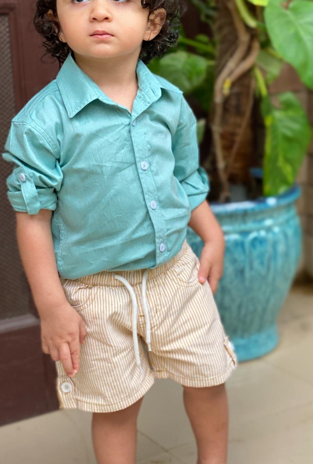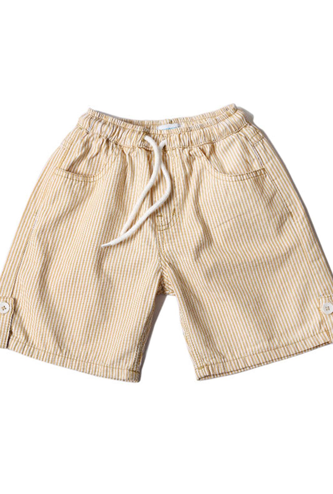 These Casual Cotton Shorts for ideal for everyday use. The Beige and White stripes print makes an perfect combo with any shirt. The shorts feature wide button and a flap at the end, draw string around the waist for comfort & style.
